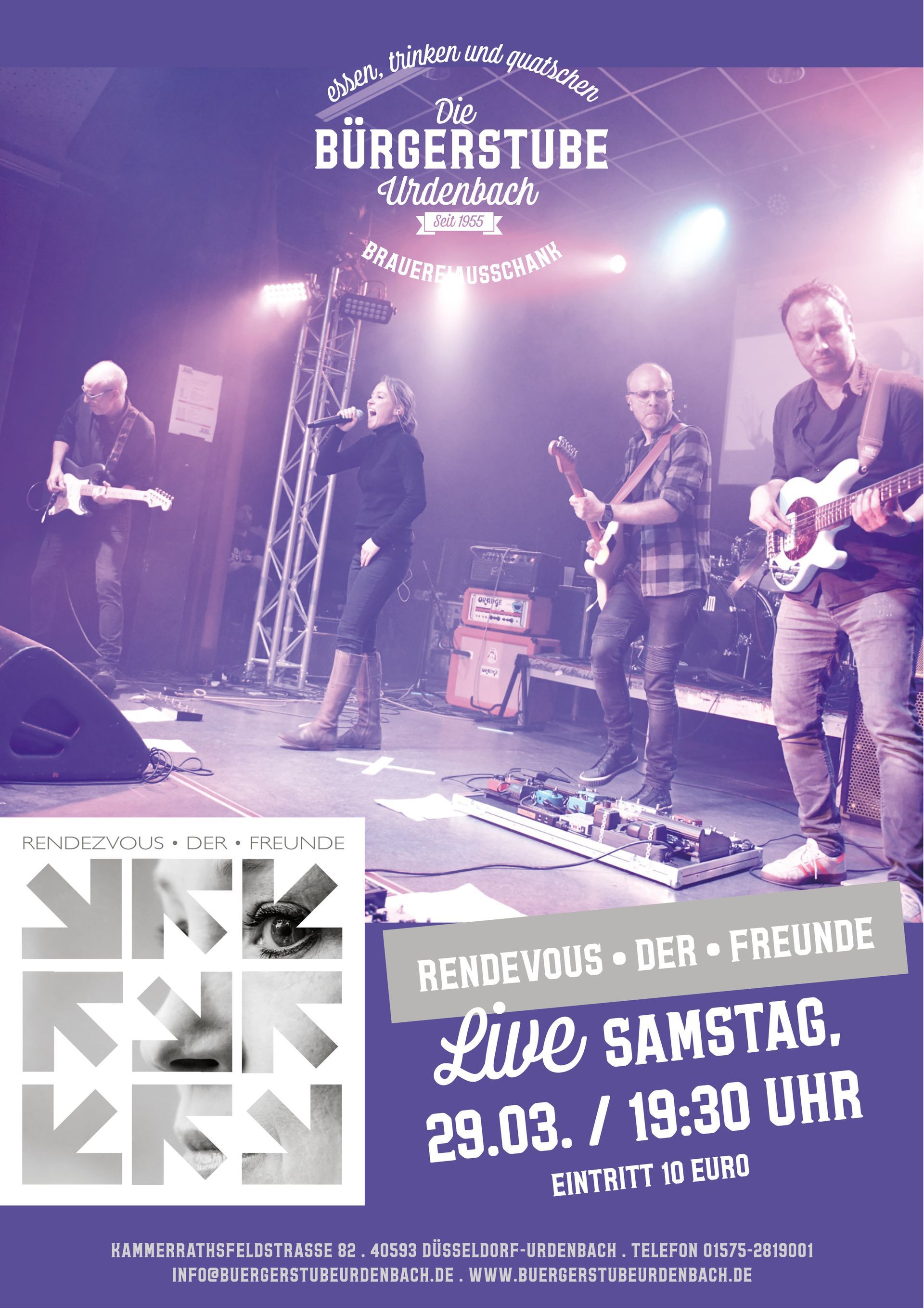 Wir freuen uns auf einen besonderen Abend mit Euch und der Düsseldorfer Band Rendevouz der Freunde. Ab nächster Woche könnt Ihr die Eintrittsbändchen bei uns abholen.